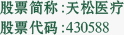 天松醫療是一家專業從事內窺鏡微創醫療器械研發、生產、銷售和服務于一體的高科技企業,于20141月上市